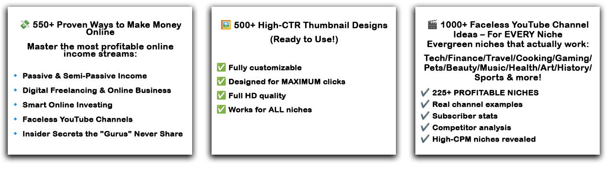 Most people spend way too much time on planning, scripting, editing and optimizing their video so they give up on their money-making channel because they think 'it's just not worth it'. With my proven system and frameworks, scripts and templates you'll be able to generate content in as streamlined of a manner as possible. You won't find this formula anywhere else.